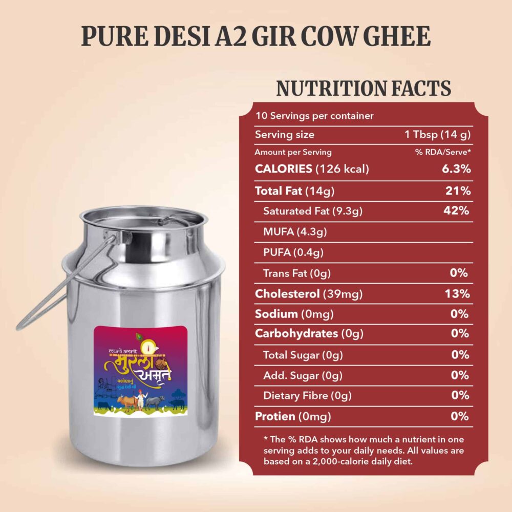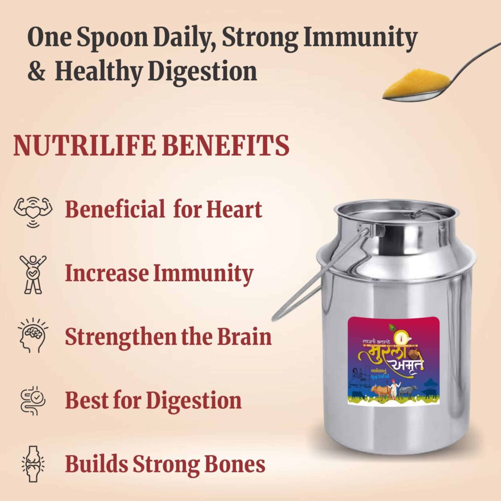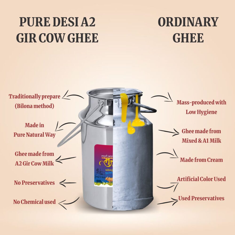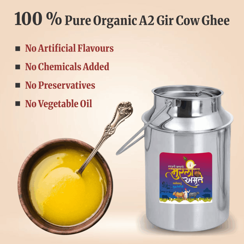 Murli Amrit Desi Cow Ghee is priced higher than normal ghee because it is made using traditional methods and pure raw materials that take more time, effort and care. Unlike mass-produced ghee, Murli Amrit focuses on quality, purity and nutritional value rather than bulk production.
