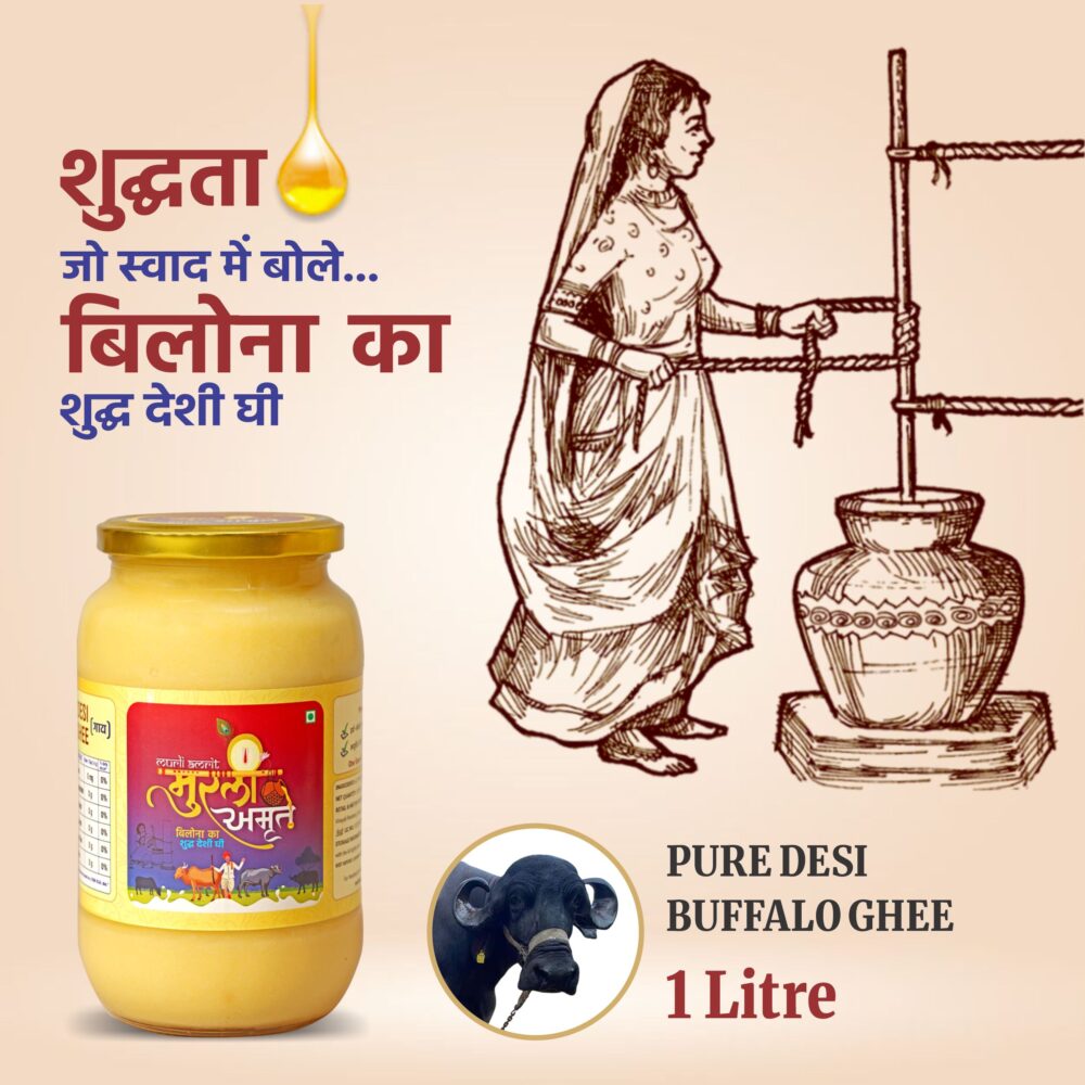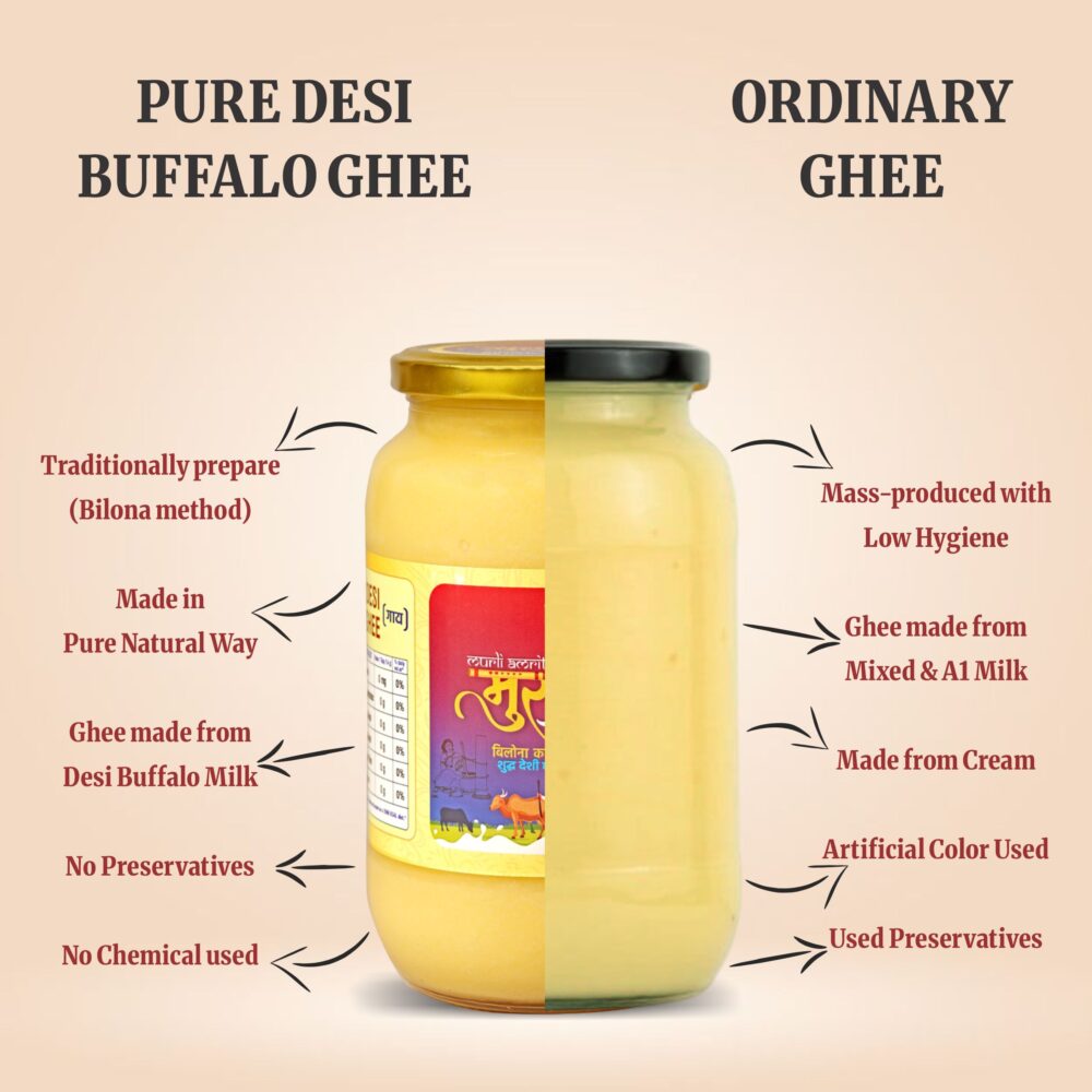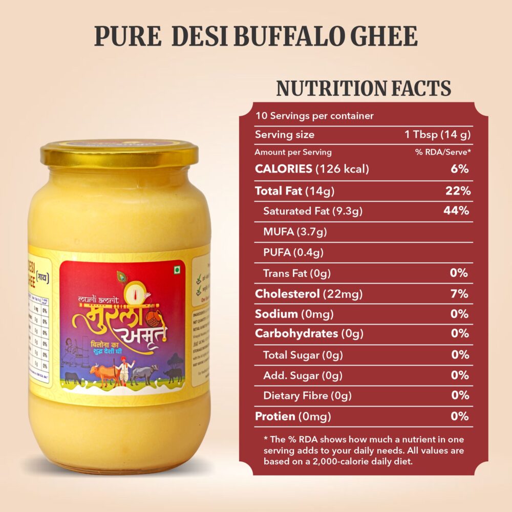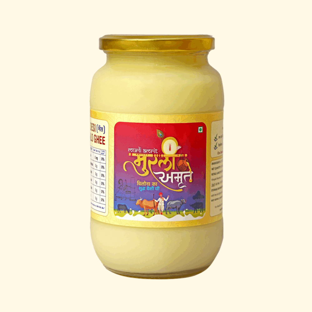 Murli Amrit Desi Cow Ghee is priced higher than normal ghee because it is made using traditional methods and pure raw materials that take more time, effort and care. Unlike mass-produced ghee, Murli Amrit focuses on quality, purity and nutritional value rather than bulk production.